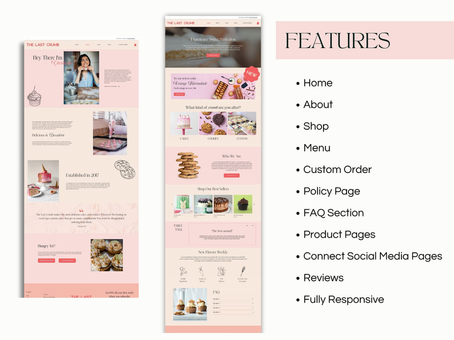 This website is the perfect addition your business that will truly wow your clients! Indulge your bakery's online presence with our exquisite bakery website template. This can also be used for any other e-commerce industry. It's completely customized to include your own pictures, product information, colors, and fonts! PLUS use Wix Shop and Menu (already set up for you) to host all of your selling needs